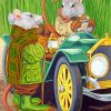 Start painting the canvas. Use the small brush for detailed areas, the medium brush for larger sections, and the large brush for broader strokes. Refer to the numbered paint set to match each part of the canvas with the correct color. Take your time with each section.